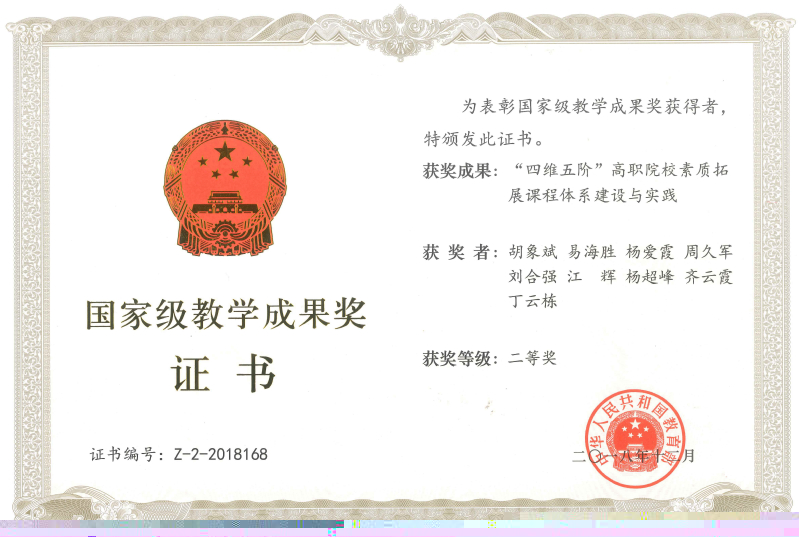 《“四维五阶”高职院校素质拓展课程体系建设与实践》获国家级教学成果奖二等奖