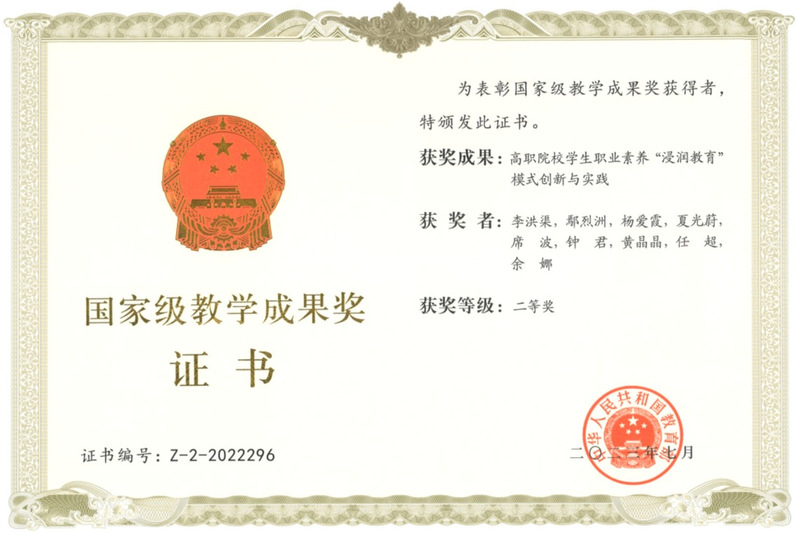 《高职院校学生职业素养“浸润教育”模式创新与实践》获国家级教学成果奖二等奖