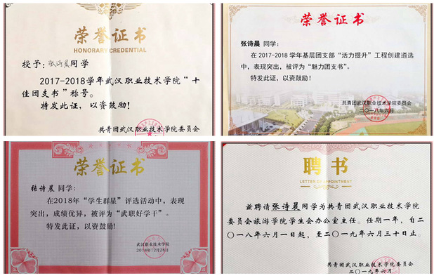 “当初高考失利,怀着一颗失落的心来到武职。在这里,遇到许多优秀的老师,遇到自己的人生导师。是老师的开导、鞭策和激励,让自己心怀梦想,不懈追求。希望通过自身努力获得荣誉且带来丰厚奖金,足够支付学费和生活费;希望在大学三年里沉淀成长,为毕业求职和未来职业发展打下坚实基础。感恩学校和老师的培养,希望能为学校的教育发展尽绵薄之力?!?/span>面对老师和学弟学妹,张诗晨坦言,“在担任旅管19304班班助期间,与学弟学妹们建立了深厚感情。得知最近学校共青团系统发布‘五四’表彰名单,旅管19304班支部和学干没有入选,很是心疼。细究原因,我以为是日常部分工作未落实到位影响班级考核,而班级考核是评优评奖的重要依据之一,我原先手把手教给你们的工作和学习方法未能被消化吸收和应用,于是有感而发。希望对学弟学妹的学习成长有所帮助,希望你们能受到启迪,朝着心中的目标,在这个春天里重新启航?!?/span>