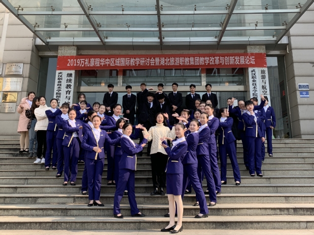 张诗晨(中)在校期间作为班助与旅管19304班学生在一起