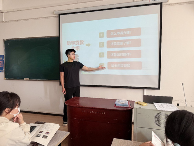 各专业、各班级辅导员(班主任)重点围绕生源地信用助学贷款政策解读、理性消费引导、个人征信维护等内容进行宣讲,并用“助学贷款还款操作要领+电信诈骗防范案例”组合,引发学生深入思考,让“契约精神”、金融风险防范意识从文件条款变为可感知的生活智慧。