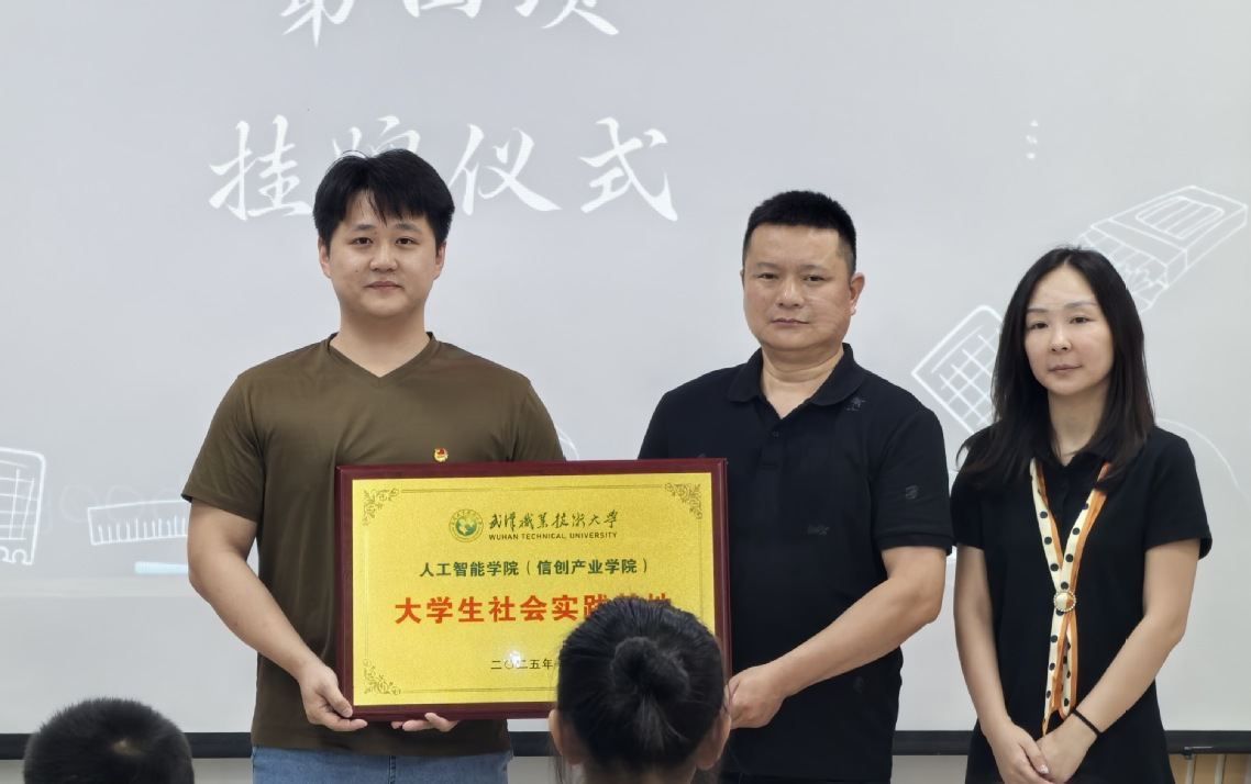 7月7日上午9时,洪山社区活动室响起阵阵掌声,武汉职业技术大学“青力青成”志愿服务队开展的AI特色暑期托管班在此开班,人工智能学院(信创产业学院)分团委书记为“大学生社会实践基地”挂牌。