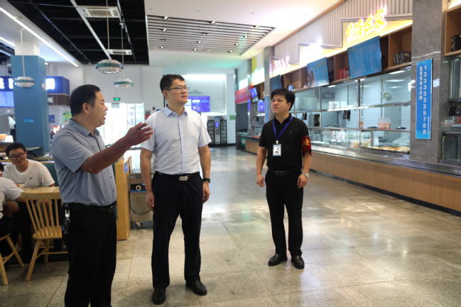 新闻网讯(党委宣传部陈峰 摄影陈峰)10月1日,在国庆、中秋双节叠加的8天长假首日,校长何?;由钊胄T?,全面检查假期安全工作,向留校师生致以节日问候与亲切关怀。副校长刁元斌及学校相关职能部门负责同志参加检查。