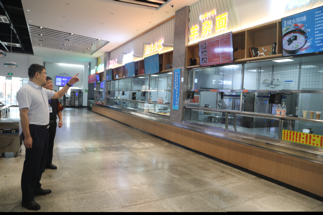 检查组一行先后前往光谷校区监控室(110指挥中心)、校园出入口、东三食堂、笃学社区及学校总值班室等重点场所,逐项核查校园安全管理落实情况。在监控室,何?;邢覆榭词悠导嗫馗哺欠段в胧凳痹诵凶刺?,要求保卫处紧盯重点区域,确保应急响应快速高效;在校园大门,他详细询问外来人员登记流程、车辆进出管控措施,强调要筑牢校园安全“第一道防线”;在东三食堂,他仔细检查食材储存、餐具消毒及食品留样管理等工作,叮嘱食堂工作人员严格把控饮食安全,保障师生假期用餐品质;在总值班室,他认真查阅值班记录台账,要求值班人员严格执行24小时在岗制度,确保各类突发情况及时处置、高效反馈。每到一处,何?;险嫣〉阄桓涸鹑斯ぷ骰惚?,针对检查中发现的问题现场提出整改要求,对工作推进中遇到的困难逐一协调解决,确保假期校园安全管理无死角、无漏洞。