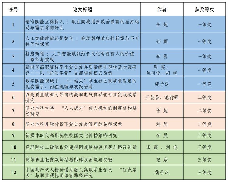 新闻网讯(通讯员许征)11月7日至9日,全国高职高专党委书记论坛2025年会在长沙举行,武汉职业技术大学党委副书记胡象斌带队参会。会议公布了2025年全国高职高专党委书记论坛征集论文评选结果,武汉职业技术大学表现亮眼,荣获“最佳组织奖”,选送的学术论文获一等奖5篇、二等奖3篇、三等奖4篇,充分展现了学校在党建引领事业发展、创新思想政治教育工作等领域的深度研究能力与实践成效。