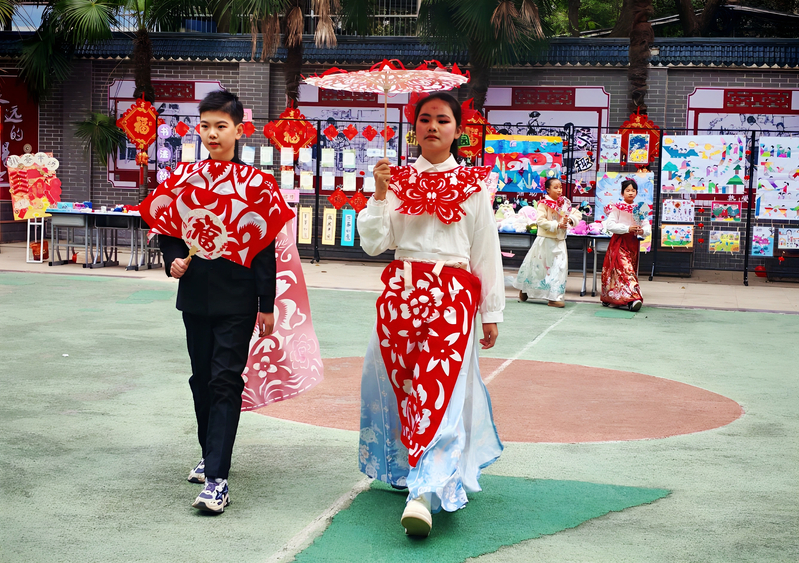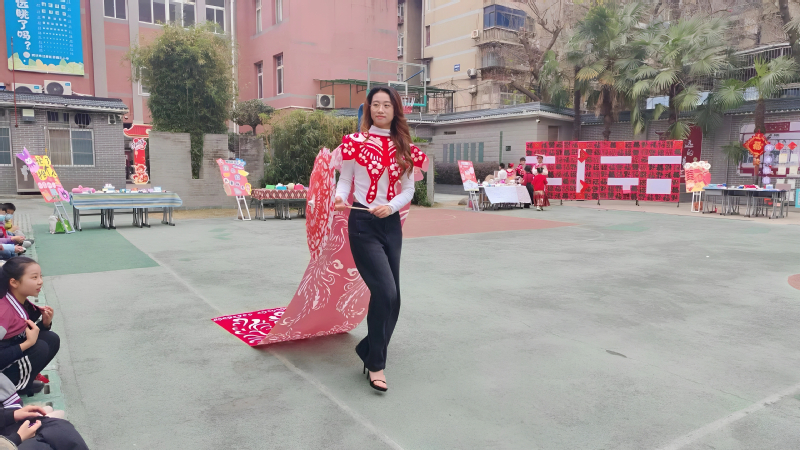 这种“双重展示”的设计,既尊重了孩子们的劳动成果,更以“大带小”的陪伴模式激发了他们的自豪感?;疃?,孩子们掌握了基础走秀技巧,同时在设计、制作、展示的全过程中真切体会到艺术表达的乐趣。