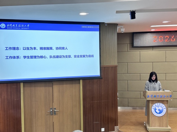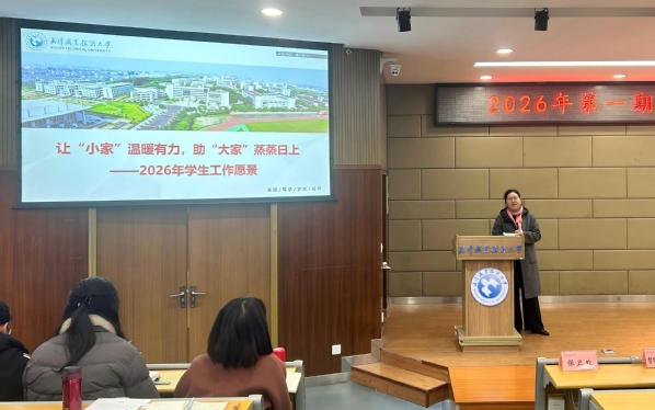 学工处陶舒处长以《让“小家”温暖有力,助“大家”蒸蒸日上》为题,全面总结了2025年学生工作成效,明确了2026年重点工作任务,她提出要以“有温度、有底气、有追求”为标尺淬炼自身素养;以“懂学生、爱学生、育学生”为准则筑牢育人初心;以“成长有??裳⒏冻鲇谢窨筛?、价值有光可耀”为目标凝聚育人合力,当好学生成长路上的引路人,推动学生工作提质增效。